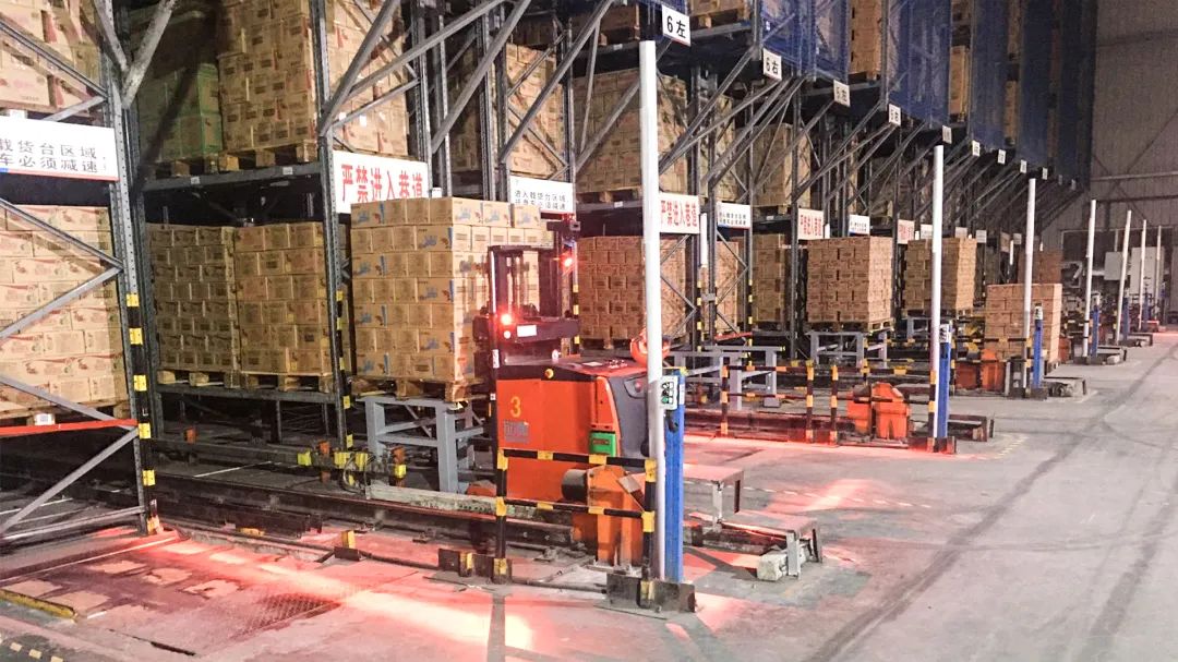 该场景为成品自动码垛或人工码垛入库,需要将快消食品从自动/人工码垛线搬至立库升降机,通过平衡重式无人叉车及调度系统RCS+天眼系统+对接系统WCS,实现搬运智能化。