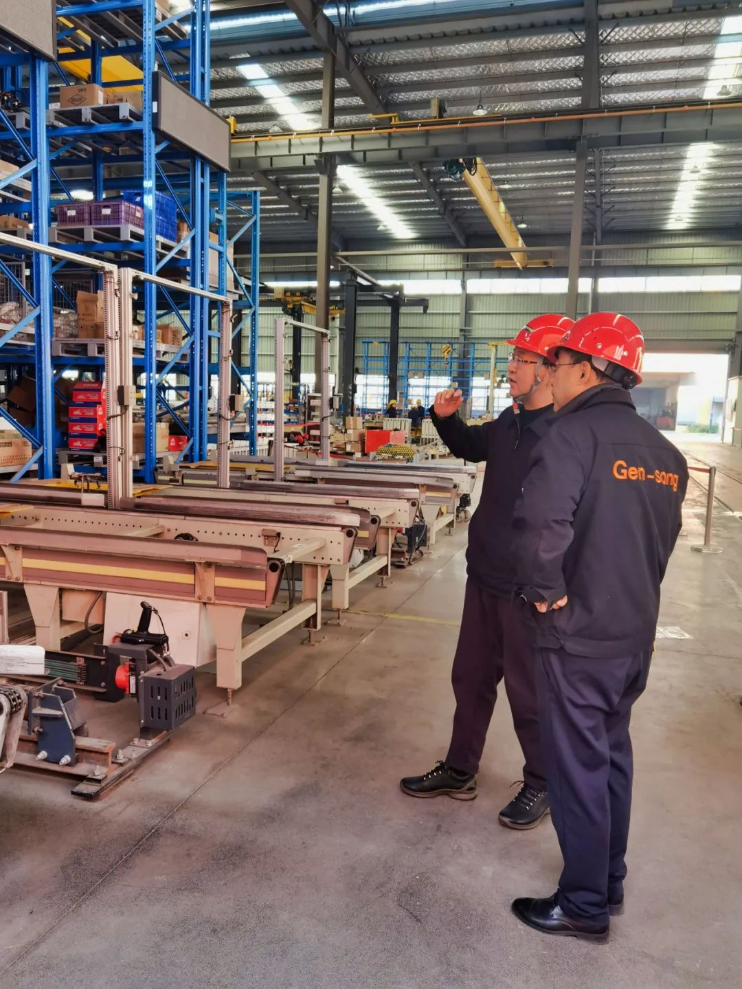 随后,王连贵一行在姚志坚的带领下,先后参观了井松智能的产品展示厅、生产及装配车间和员工办公区,深入了解了井松智能目前的经营发展状况以及未来的发展战略。