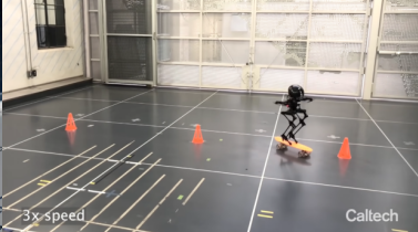 美国加州理工学院的研究人员建造了一个双足机器人,它将行走和飞行结合起来,创造了一种新型的运动方式,使它变得异常灵活,能够进行复杂的运动。