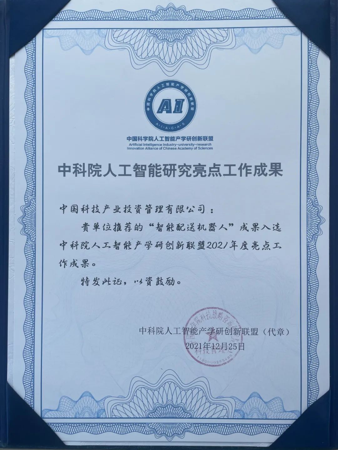 中国科技产业投资管理有限公司投资的上海思岚科技有限公司,开发出智能配送机器人及解决方案,入选“年度人工智能亮点成果”,助力产业智能升级和数字化转型。