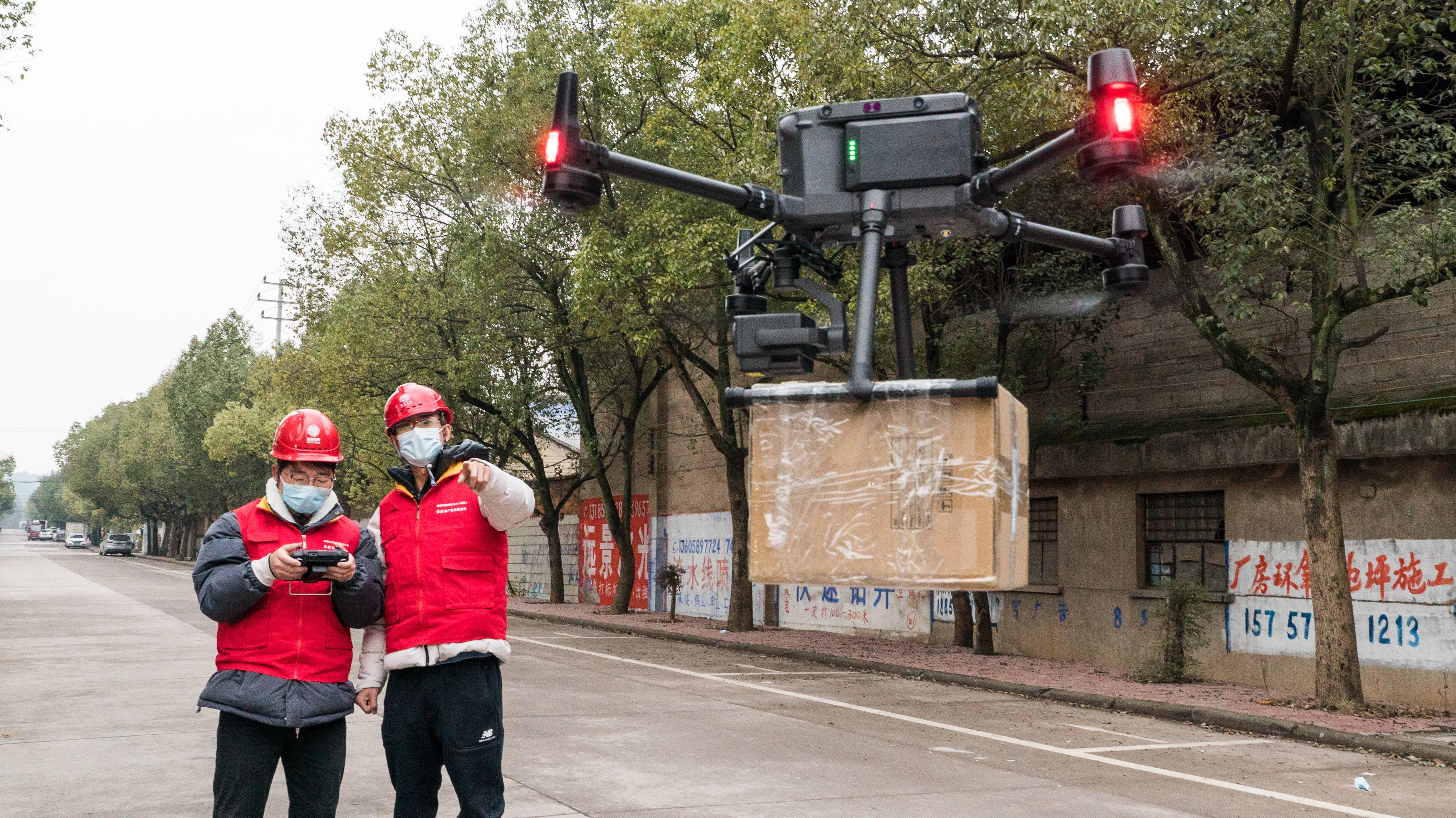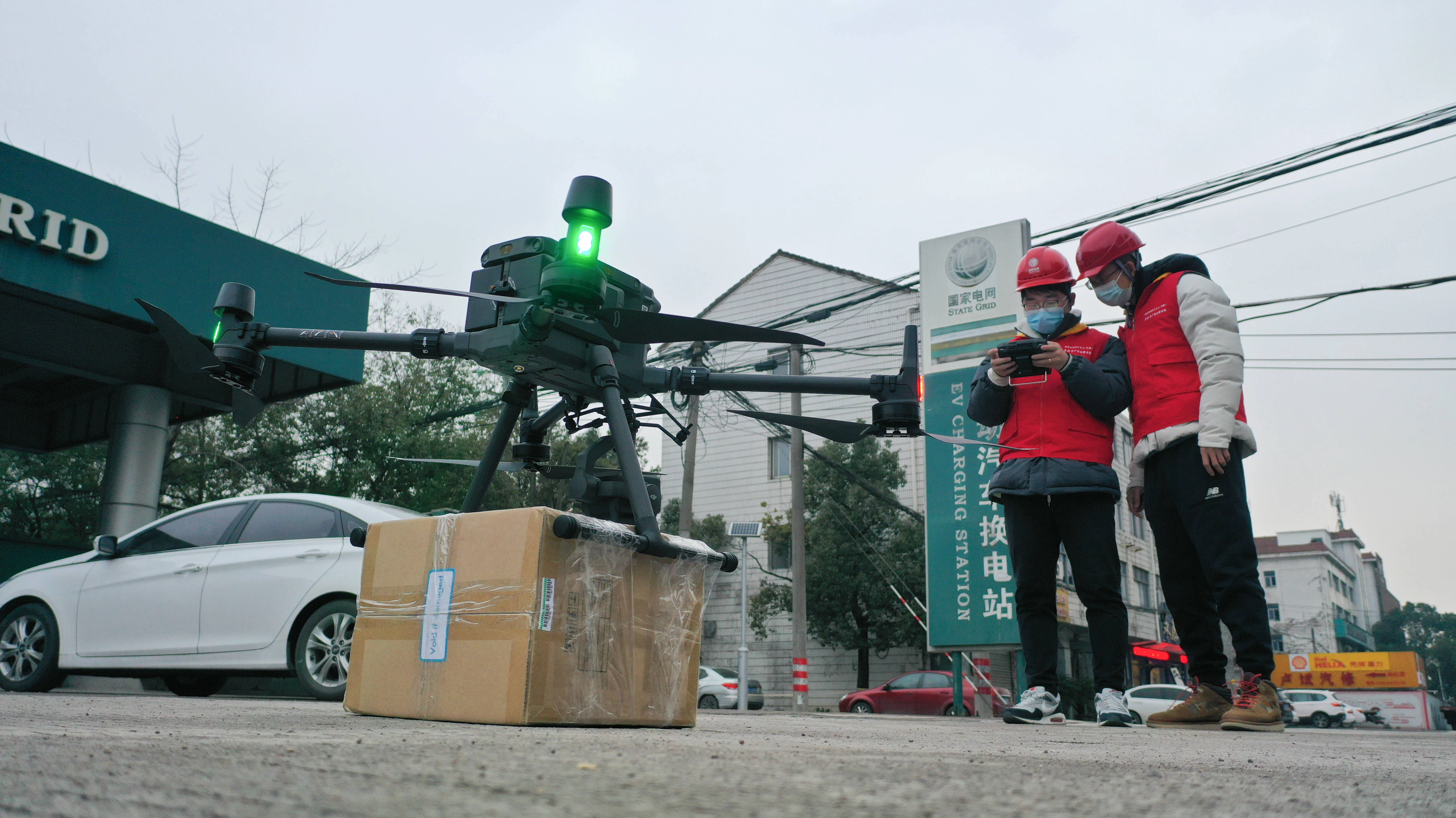 “操作成功,感谢使用。”随着提示声响起,一架四旋翼无人机,装载着疫情应急抢修物资飞向封控区。