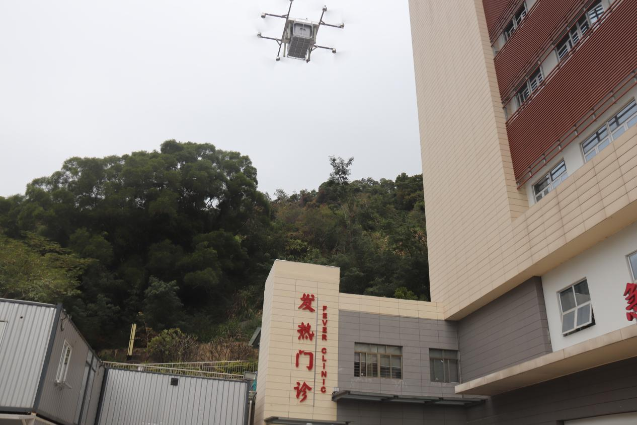 1月7日,深圳突发本土新冠疫情,全市瞬间进入战斗状态。1月10日下午,罗湖医院集团用无人机运送莲塘各采样点的核酸检测标本,从罗湖中医院门诊楼前广场起飞,13分钟左右飞到目的地,极大提高检验报告效率、缩短防疫时间。