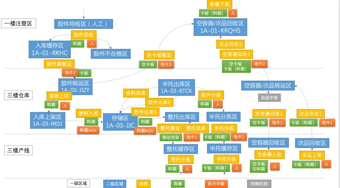 任何仓储物流系统,首先要明确支持管理的货物种类。从这一点上,就可以看出流通型 WMS 和工业级 WMS 的巨大差异。大家可以发现,多数流通型 WMS 管理的都是“商品”。例如,对于电商,买进卖出的都是各类“商品”。而对于生产制造型企业,管理的货物种类多很多,一般统称“物料”,包含原材料、在制品(半成品)、外协品、产成品、工具、模具等。商品虽然也分大类,如电器和服装,但一般都可以通过规格、制造商、特征属性、批次等管理。但在制造业企业中,原材料、在制品、产成品等物料的管理差异更大。原料有采购、收货、质检、装箱等流程,要进行批次管理、ABC 分类、安全库存控制、齐套管理等业务处理。在制品的流转、质检、暂存跟生产制造管理紧密相关。产成品类似商品,但可能需要生产追溯等业务处理。