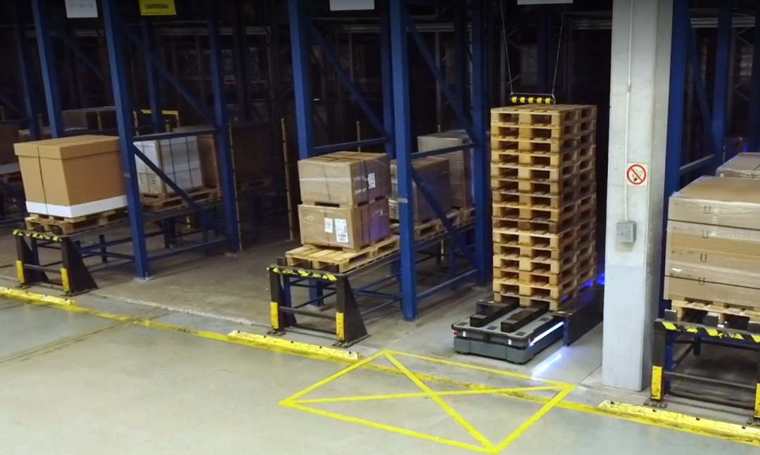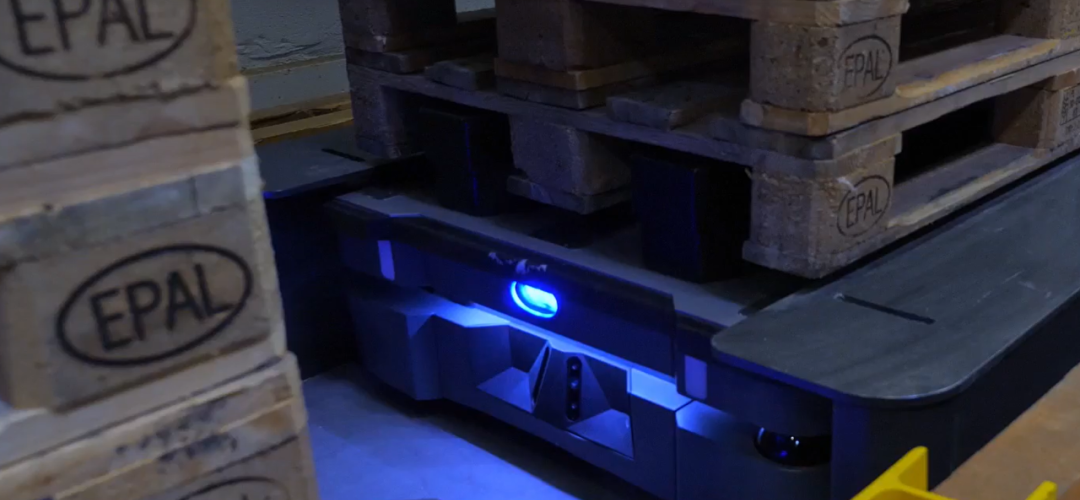我们客户的这个部署任务要求运输大量的空木质托盘,因为这些托盘要在自动化仓库中使用。这个流程非常适合自动化运输。配送中心的部署工作包括将负责运输空托盘的自主移动机器人集成到内部货物运输流程中。在测试过程中,该机器人行驶了超过60公里,成功完成了180次任务,运输了超过1,500个空托盘。得益于此,我们能够优化内部运输,同时充分确保员工的安全,保证这笔投资的收益性。