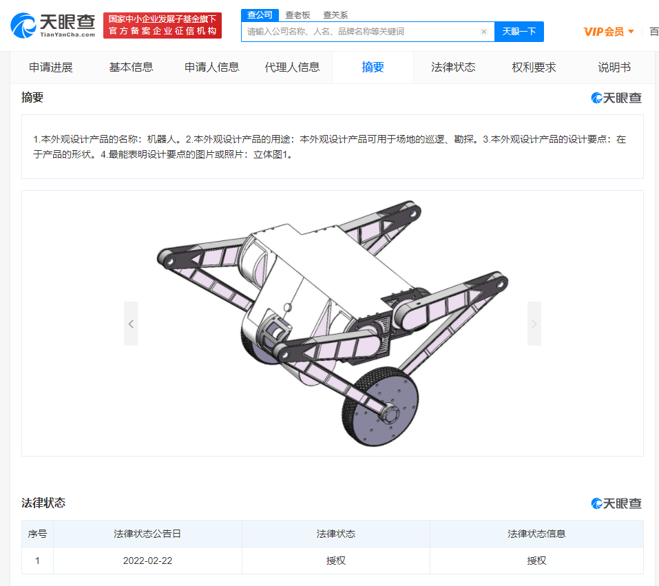 2021年8月,腾讯科技(深圳)有限公司获得“多模态四足机器人”专利授权,该外观涉及用于拍照、摄像、地理环境勘测、搜救、户外巡逻等,发明人为现任腾讯首席科学的张正友等。