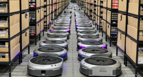 ▲ 极智嘉P800拣选机器人在ALPEN仓内运行