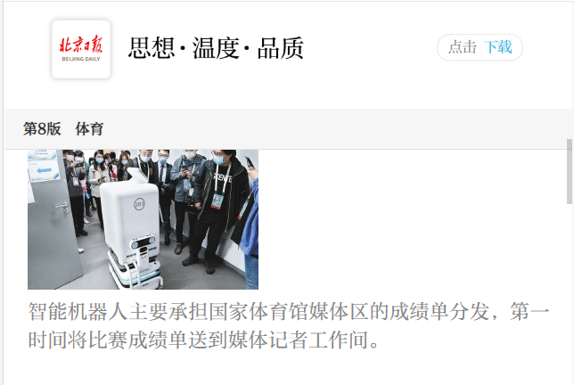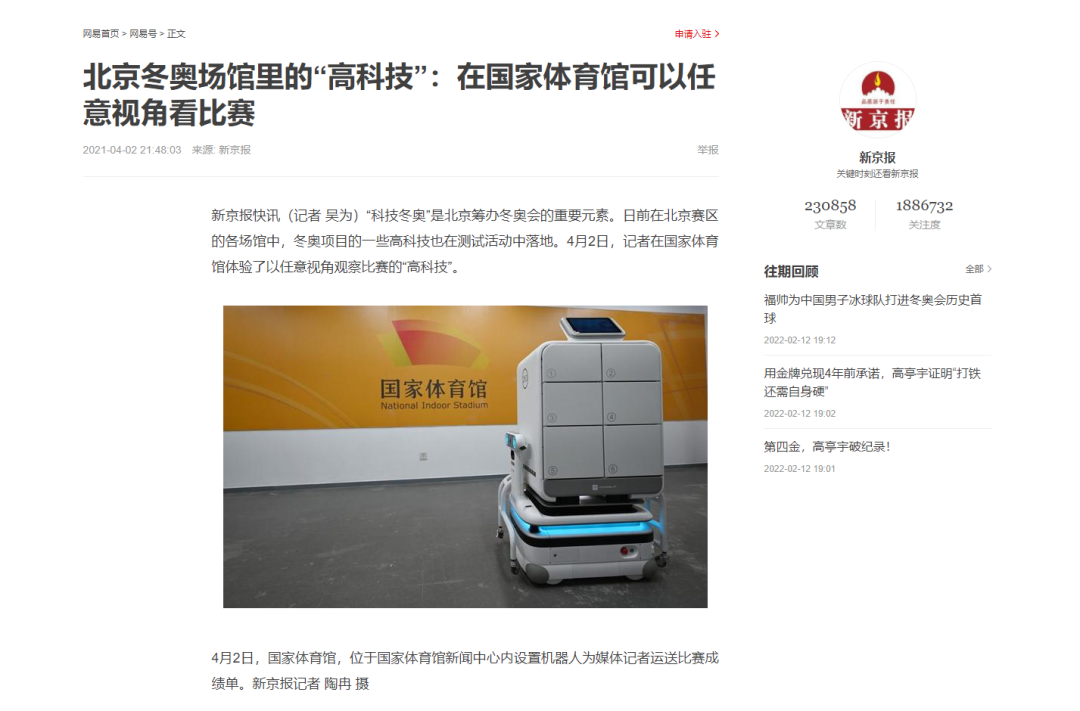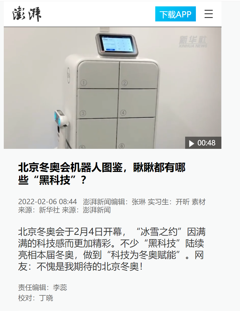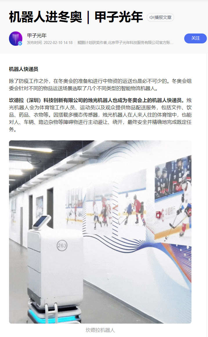 凭借分体式设计,火出圈,被众多媒体争相报道,包括央视频、央视新闻、北京日报、新京报、消息报、广东科技报、新华网、澎湃新闻、甲子光年等媒体以图文、视频不同形式为大家揭秘坎德拉机器人在国家体育馆的运作情况。