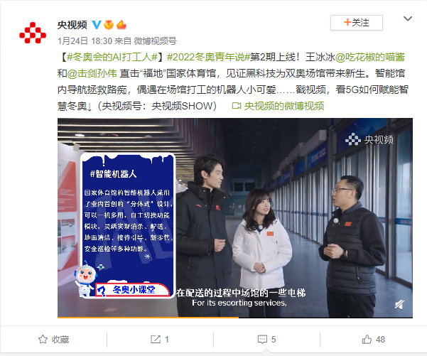 除了获得新华社、央视新闻等权威媒体肯定外,也凭借呆萌的外观设计收获了央视冰冰的喜爱,喜提同框出镜机会。