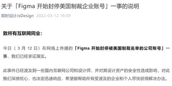 此外,即时设计JsDesign公告称,3月12日在网络上传播的“Figma 封停所有被美国制裁名单的公司账号”事件已经波及到一些国内互联网公司和设计师,并对其设计资产的安全性造成影响,对此公司决定迅速响应。