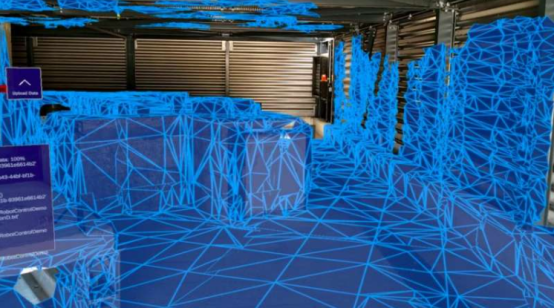 用户对空间网状结构的看法,用HoloLens拍摄并叠加在真实世界上。资料来源:Delmerico等人。