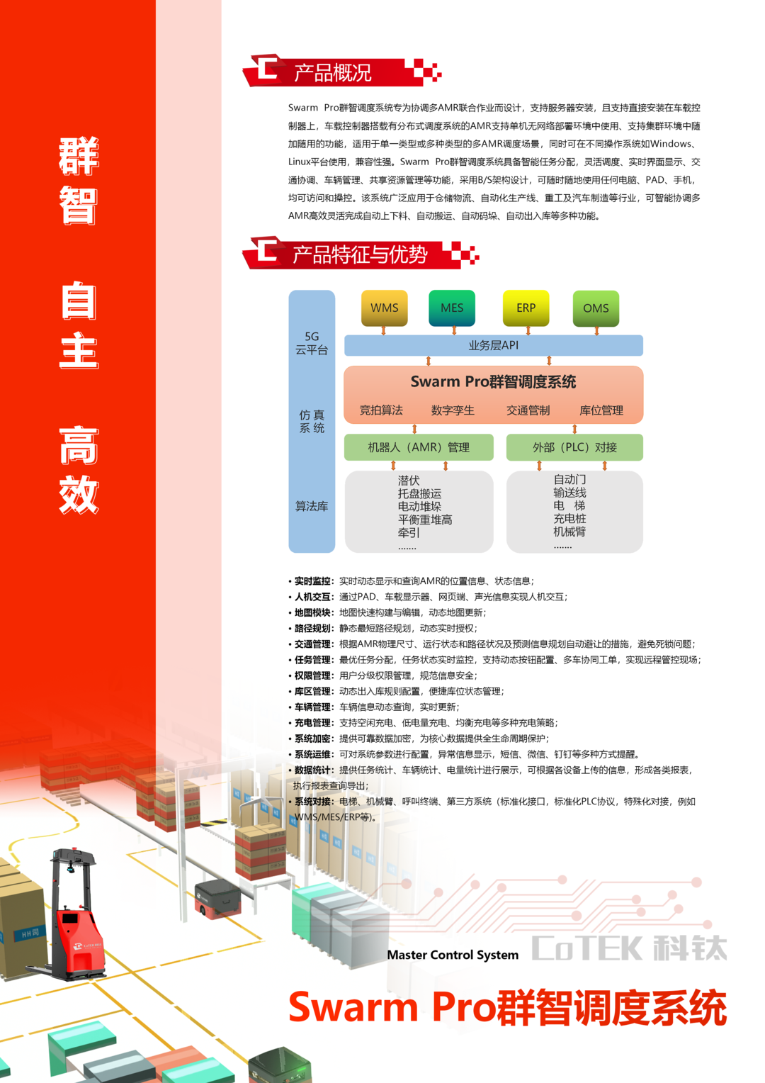 钛极•御系列主要是科钛SmartGo AMR控制器、Swarm Pro群智调度系统。