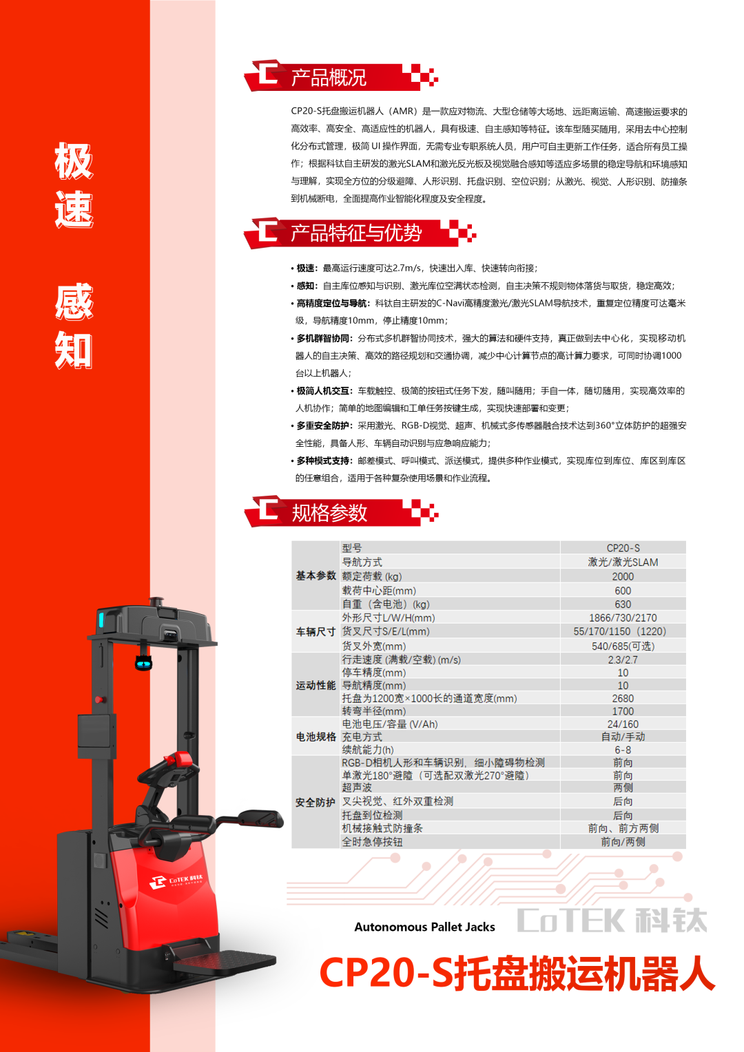 CP20-S:极速、感知,最高速度可达2.7m/s