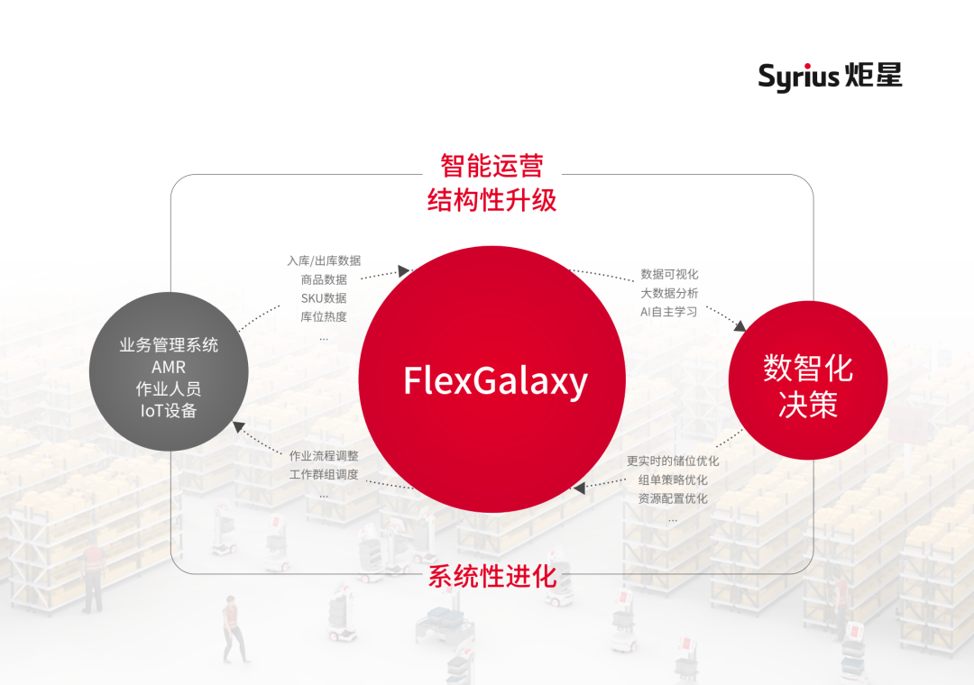 FlexGalaxy是以数据驱动的AIoT云服务系统,利用IoT数据收集和分析、AI自主优化等技术,结合仓库管理系统、AMR及其他库内设备组成一套仓储物流运营管理体系。FlexGalaxy可以实施监测数据波动,动态调整AMR作业流程、调度AMR集群,同时向上游系统输出优化方案,配合简单易用的操作界面,构建仓库的物流数据指挥中心的重要环节,助力全流程运营数智化。软件方面,搭载在AMR上的操作系统megacosmOS也完全由Syrius炬星自主研发,未来或向开发者开放以共同提升AMR的应用前景。