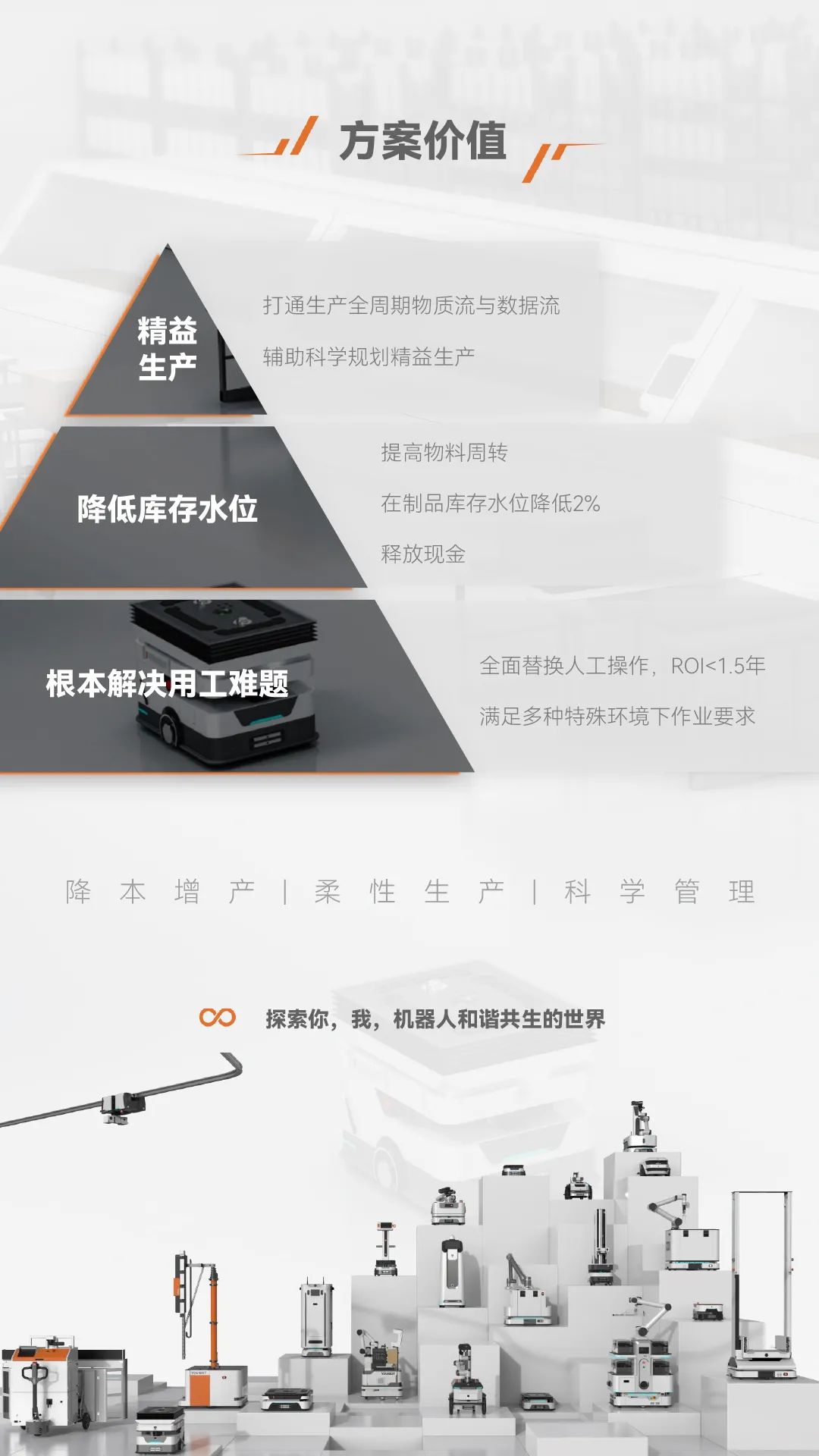 公司为合作伙伴提供移动机器人本体及相关集成解决方案。致力于为半导体及电子制造,飞机制造,汽车零配件等制造行业提供工厂自动化及场内物流解决方案。为电力电网、能源冶炼、商业物业及公共交通等行业,提供巡检及自动化维保解决方案。