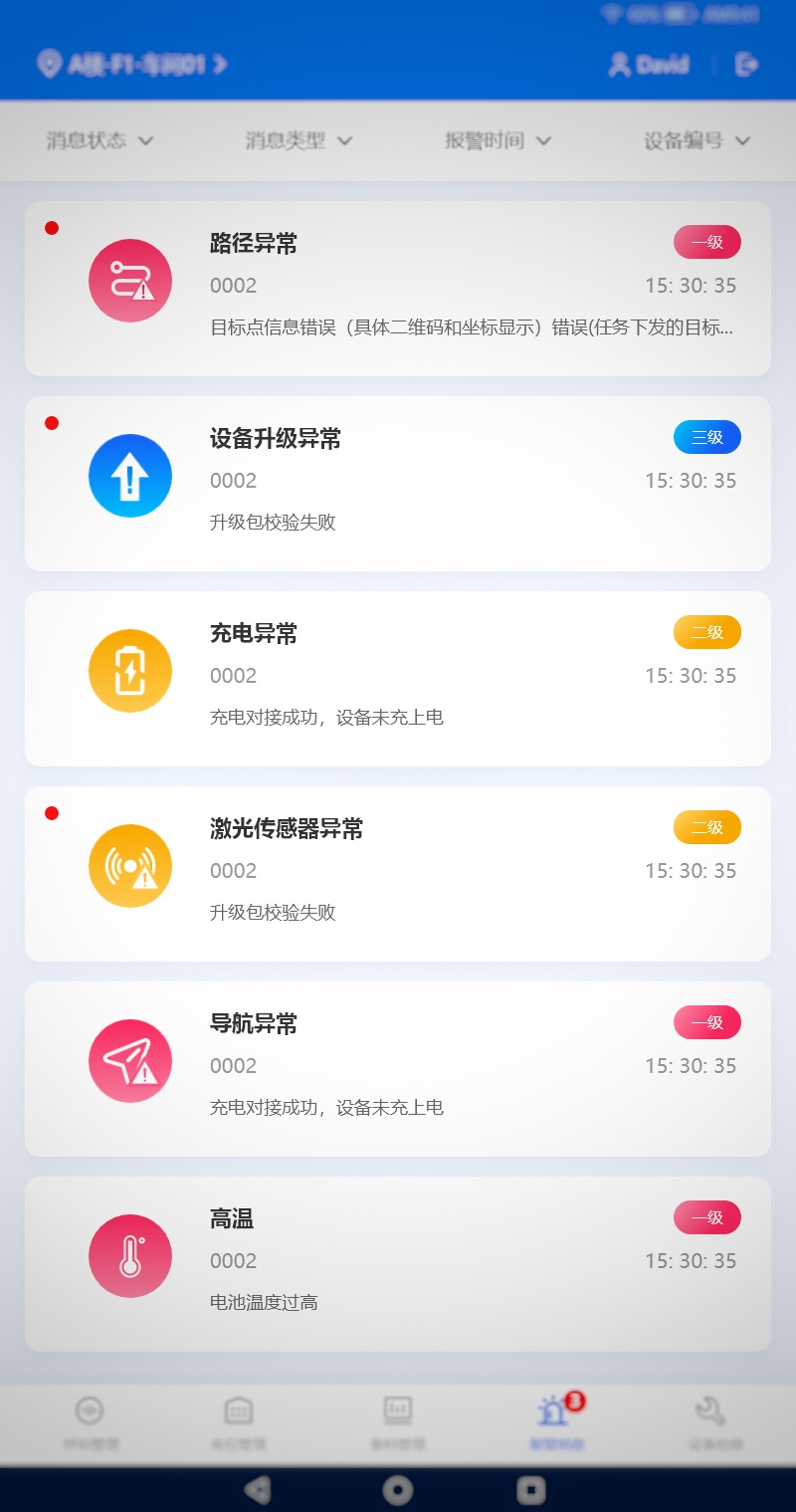 根据不同型号AMR要求,系统智能管理设备检修,无需线下人工管理;