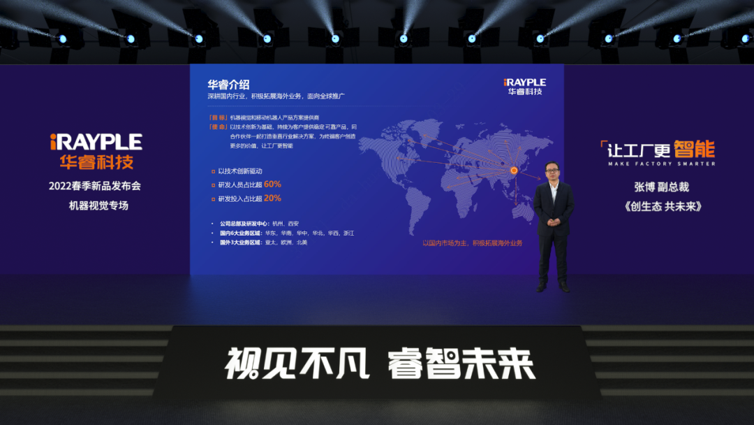 2022年4月12日,以“视见不凡 睿智未来”为主题的华睿科技机器视觉新品发布会圆满举办。会上,华睿科技副总裁张博为我们介绍了机器视觉产品的业务布局以及2022年的战略方向,并发布了工业相机、数据采集卡、智能相机、算法平台等新产品、新技术。机器视觉产业联盟秘书长于晓娟女士分享了中国2021年中国机器视觉市场规模和发展趋势的行业报告。