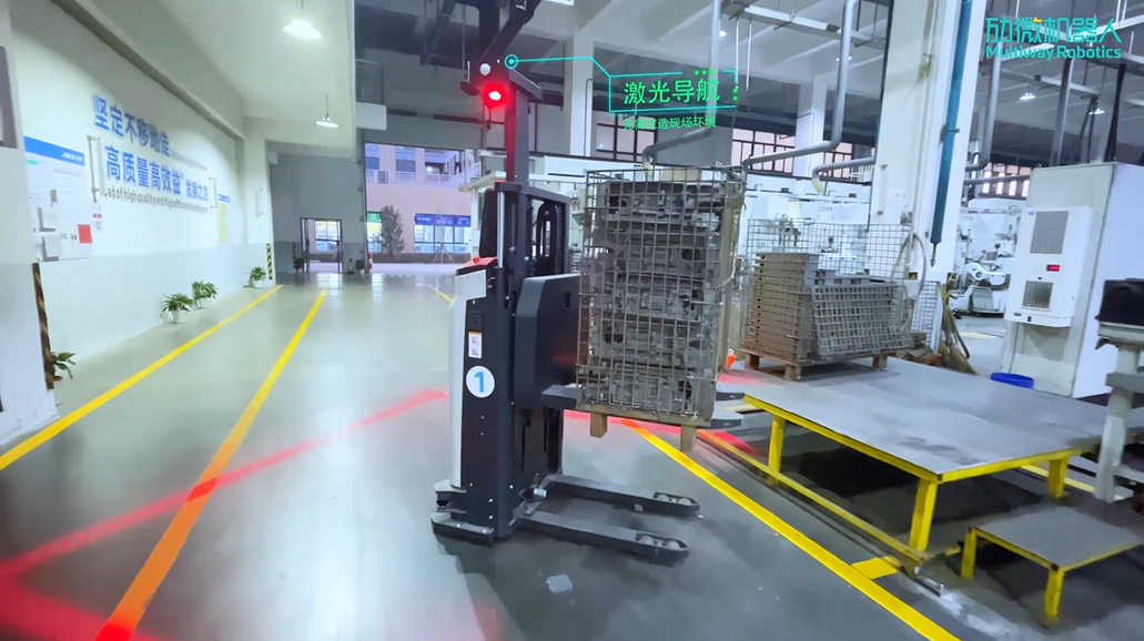 劢微无人叉车采用激光SLAM自然导航算法进行定位与导航,并融合了自主研发的“视觉系统技术「天眼系统」”,环境自适应能力强,无需改造现场实现快速部署,并助力企业降本提效。