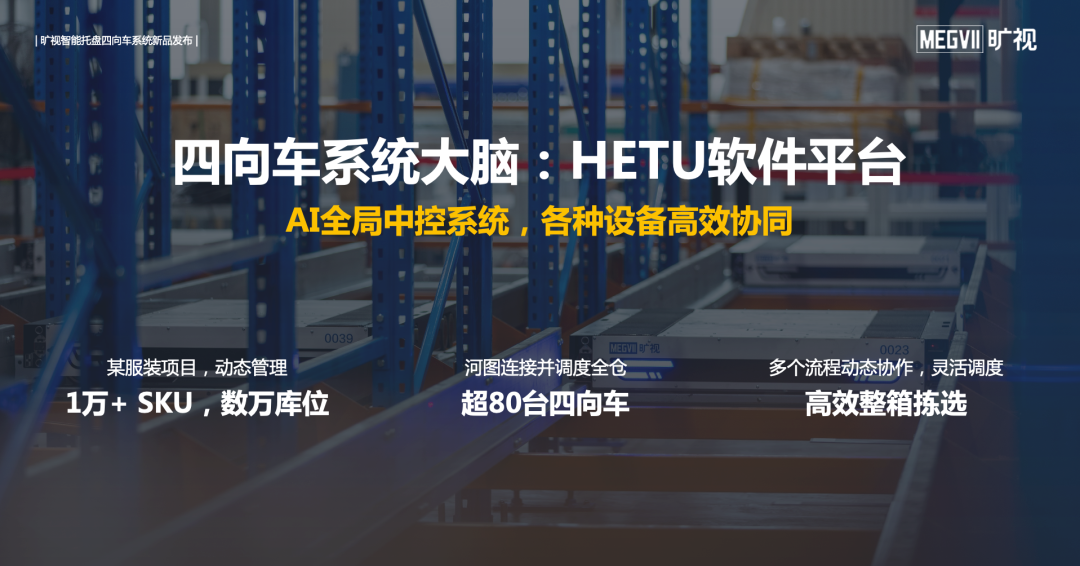其中,智能托盘四向车PS1500系列新品,作为旷视自研核心智能硬件产品,更是亮点颇多、诚意满满。