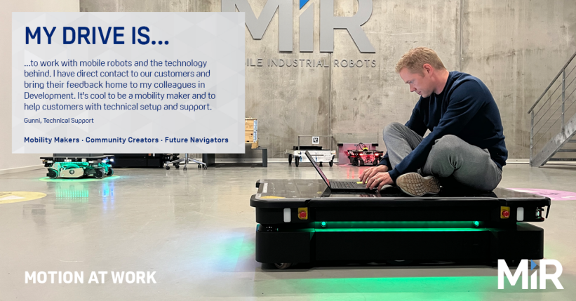 很棒的工作,走这条路,选对了!MiR 汇聚了机器人爱好者,我们互相勉励同行。我们拥有共同点,合作以及共同体验激动人心的旅程。我们与同事、合作伙伴以及客户共同创作——无论何时,你都对周围的人至关重要。