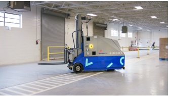 克罗地亚机器人和人工智能解决方案公司Gideon推出的用于牵引车装载和卸载作业的自主叉车-Trey。图片来源:Gideon