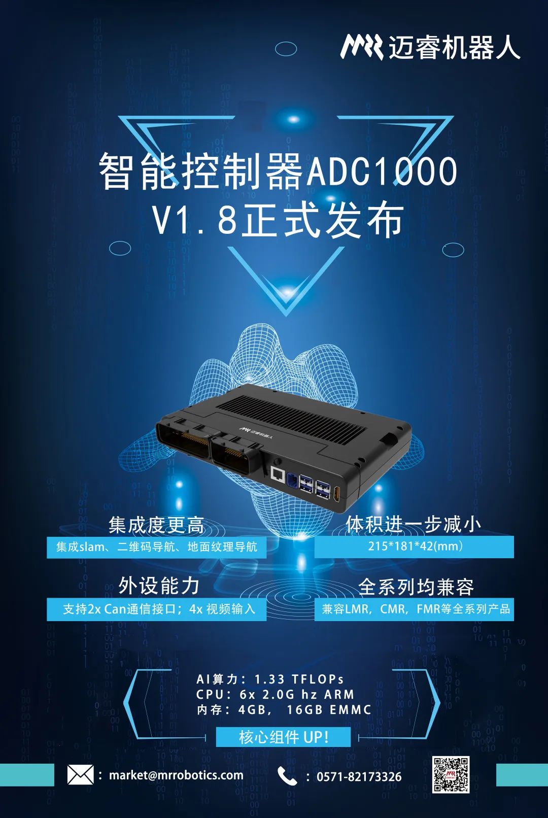 5、为满足客户对AMR性能需求不断提升,迈睿机器人发布了完全自主研发的移动机器人智能控制器ADC1000全新升级版本——ADC1000 v1.8。