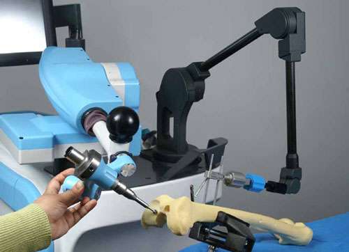 在Robodoc机器人系统使用之前,医生用凿子、锤子在骨头里凿出一个洞,然后用骨水泥来修补这个洞,并补充置换关节之间的任何不规则的地方。