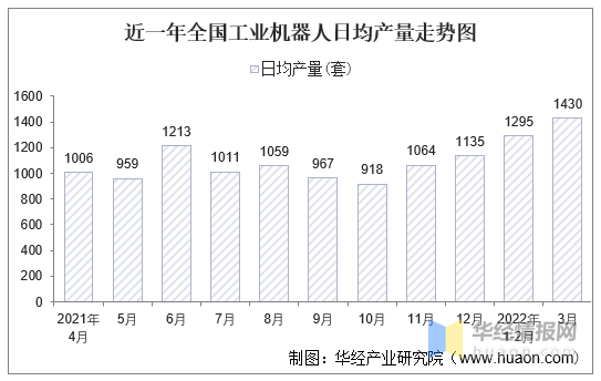 近一年全国工业机器人日均产量走势图