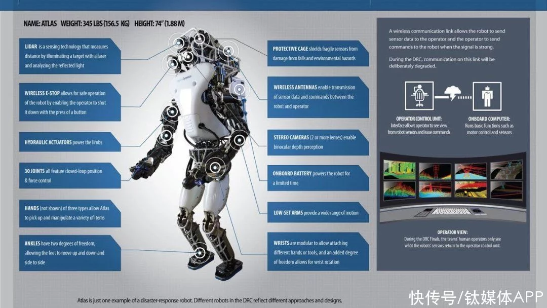在这方面,Boston Dynamics走在前列,在Altas机器人的设计中引入液压系统进行动作控制,这样可以保证瞬时更大的控制动力输出和更精确的力传递。Atlas机器人还引入了仿生的整体集成结构设计概念,有像骨骼和关节一样的支撑结构及油缸,还有像血管和神经一样的油路和电路。