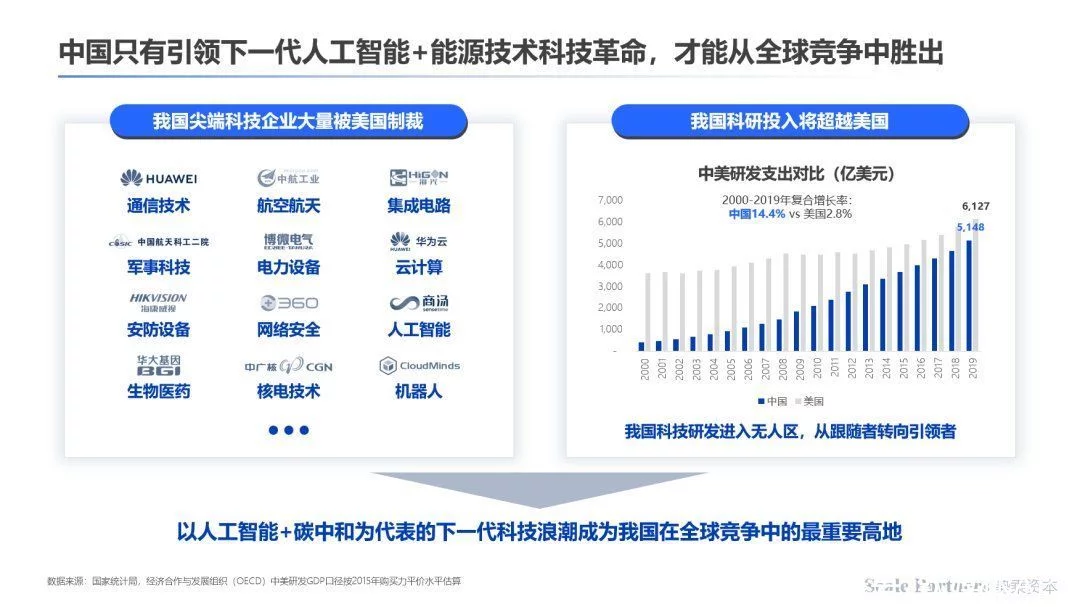 因此中国如果仅在现有技术框架中与欧美竞争,只会不断被卡脖子,事倍功半。只有引领下一代人工智能和碳中和能源技术科技革命浪潮,才能从全球竞争中胜出。