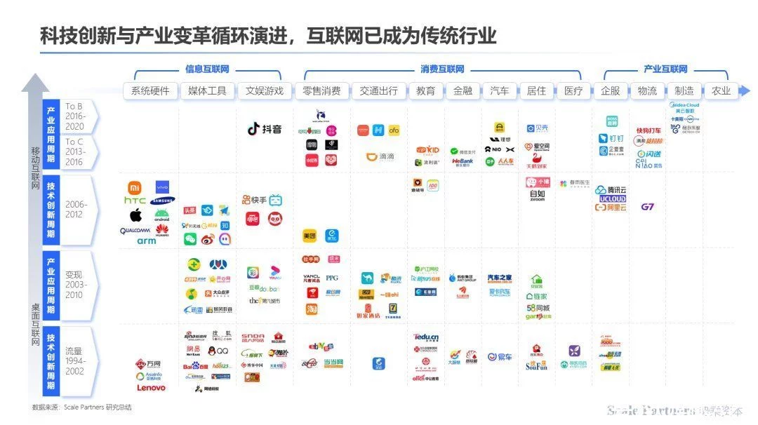 而这个过程中可以发现,移动互联网时代对产业的渗透深度比桌面互联网更深,桌面互联网介入行业基本停留在信息连接层面,而到移动互联网时代,众多掌握先进技术要素的公司开始自己下场开超市、组车队、重构教育内容和金融机构,甚至是卖房、造车。也有些公司虽然诞生在桌面时代,但成功抓住移动爆发红利杀出重围,比如美团、去哪儿、支付宝。