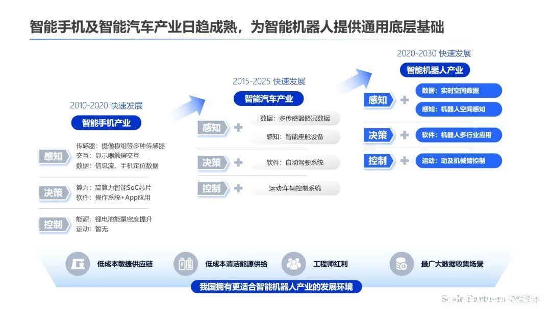 3.在全球十亿量级的智能手机、百万量级的智能汽车产业引路的前提下,电池、5G、算力、智能驾驶、感知等通用性技术日趋成熟,当前十万量级的智能机器人将成为下一代爆发的超级终端。