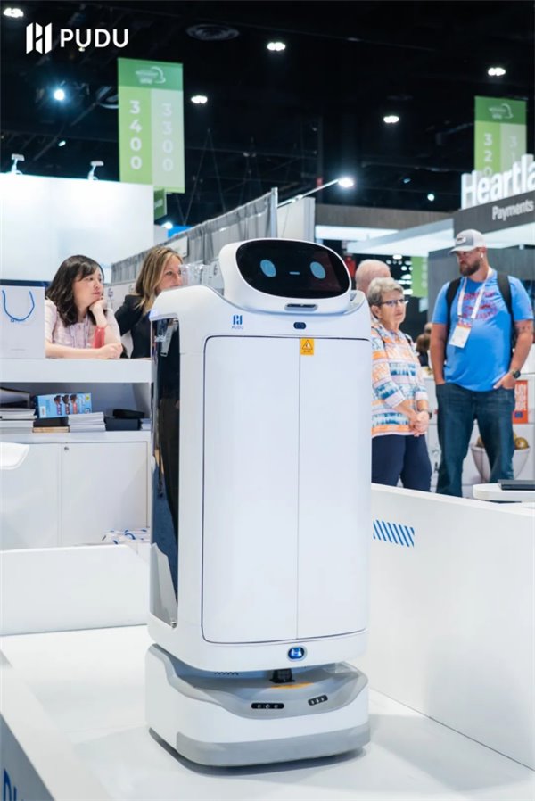 值得一提的是,这也是高峰期畅通无阻的配送机器人“巧乐送”自今年 3 月份发布以来,第一次在美国亮相。“巧乐送”是在继承普渡前代产品优异性能的前提下,为优化机器人在餐厅高峰期的顾客体验和通行效率而生的新一代配送机器人。通过建立人机通行规则再加上多模态交互的融合来实现对机器人行驶意图的反馈和传达,最终实现机器人和行人之间的路权分配,解决餐厅高峰时段人机协作效率非最优和顾客体验不佳的问题。