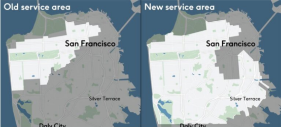Cruise公司在旧金山的机器人轴的新旧服务区对比。|来源:Cruise