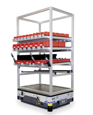 这样的系统解决方案也被用作移动的机器人,用于拾取和放置活动,在订单拣选环境中,或具有装配和连接过程的合作能力。最后,它们被优化用于生产和分销物流,用于运输各种货架和架子。