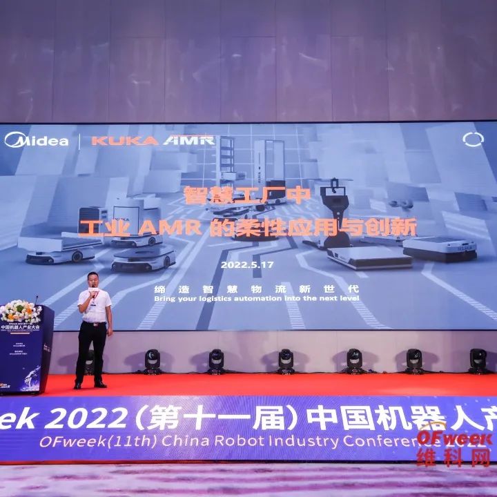 库卡机器人华南区销售负责人袁开成会上,库卡机器人华南区销售负责人袁开成以《智慧工厂中工业AMR的柔性应用与创新》为主题,向来宾分享了目前工业物流机器人AGV/AMR的市场现状、行业分布及未来市场预测,让大家重新认识了移动机器人在智能工厂、智能仓储等领域的重要作用。数据显示,到2025年移动机器人市场营收将持续强劲增长,达到180亿美元,到2025年底,全球将有近210万台移动机器人出货。在移动机器人领域,KUKA并不是“新人”。早在2008年,德国KUKA就已率先组建了AMR团队,并理念超前地研发了新一代导航技术—激光SLAM。从移动机器人硬件产品研发的本土化,到移动机器人全球研发中心转移至库卡中国,再到KUKA正式进入美的集团、上海成为KUKA AMR全球总部,在其推进移动机器人业务本土化进程中,KUKA正在依托全面的产品矩阵、可靠的产品性能、适配的行业解决方案,以及完善的渠道优势,为本土客户带来一流的智能制造和智能物流完整解决方案。