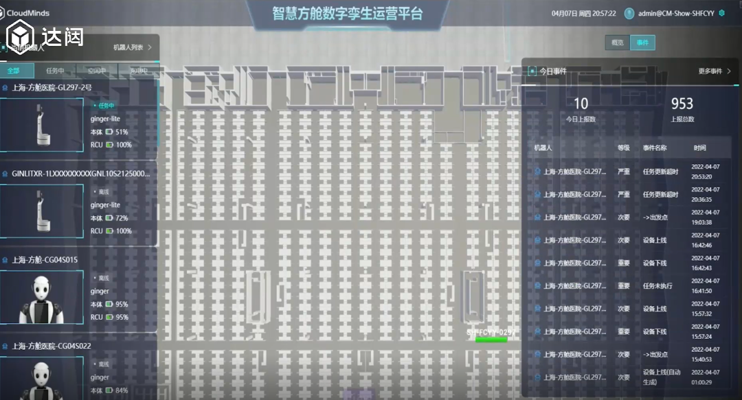 “历时60天,我们终于迎来了休舱,看到众多患者痊愈出院,非常欣慰。” 现场,达闼联合创始人汪兵对澎湃新闻等媒体记者说到:“感谢各领导的支持,达闼有机会尽科技企业的力量,以’数字孪生平台+多款机器人’深度参与到世博方舱、会展中心方舱、众多社区的抗疫之中。也是第一次实现了这么大规模的机器人快速部署和应用。”