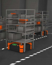 自主导航机器人(AGV)来自 Safelog,货到人流程可以安全灵活地自动化。