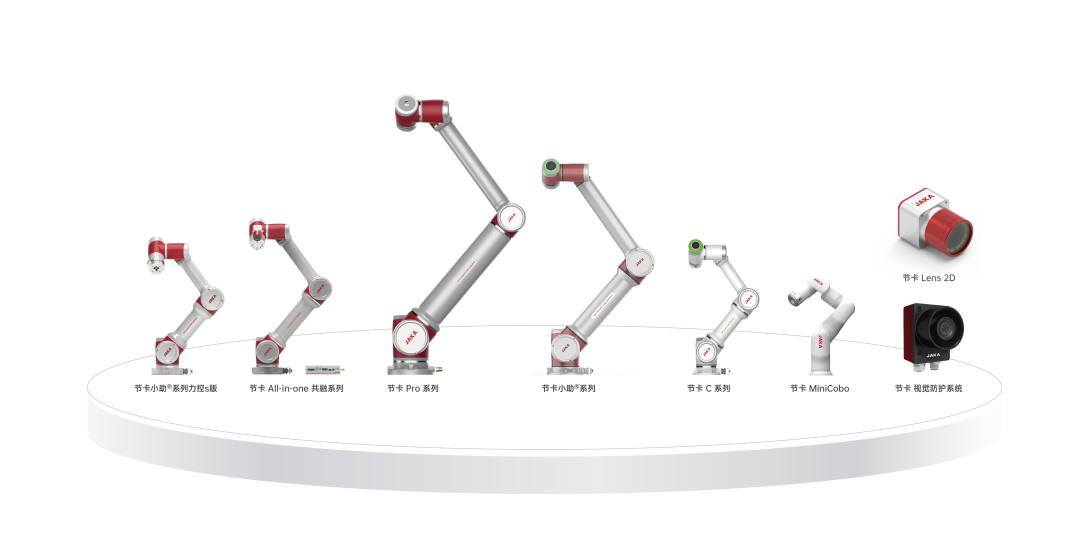 具体到产品上,节卡机器人接连推出JAKA Zu系列协作机器人(通用版,力控s版)、All-in-one共融系列协作机器人、C系列协作机器人、JAKA Pro系列、MiniCobo商用协作机器人、节卡Lens系列视觉等产品,均具有良好的通用性与柔性特点,可轻松应用于各行业领域,并满足不同场景应用需求。