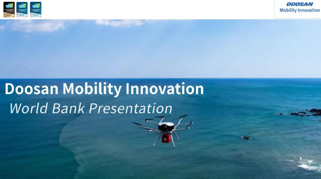 斗山创新近期参加了世界银行主办的无人机应用论坛,并在论坛中发表了"基于长续航氢动力无人机的海洋应用"。