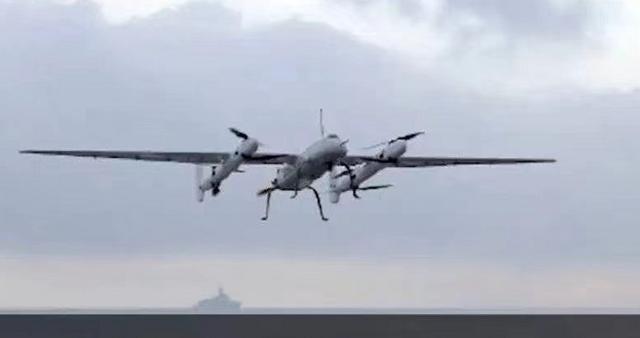 外界从外形及形状来看,认为这种无人机可能具备垂直/平飞能力,可能是国产倾转翼无人机。此前国产倾转旋旋翼无人机已经部署在055驱逐舰上面,用于执行ISR、反潜、巡逻、电子战等任务。此次登上山东号航空母舰执行任务应该更加广泛,包括运输补给任务等。