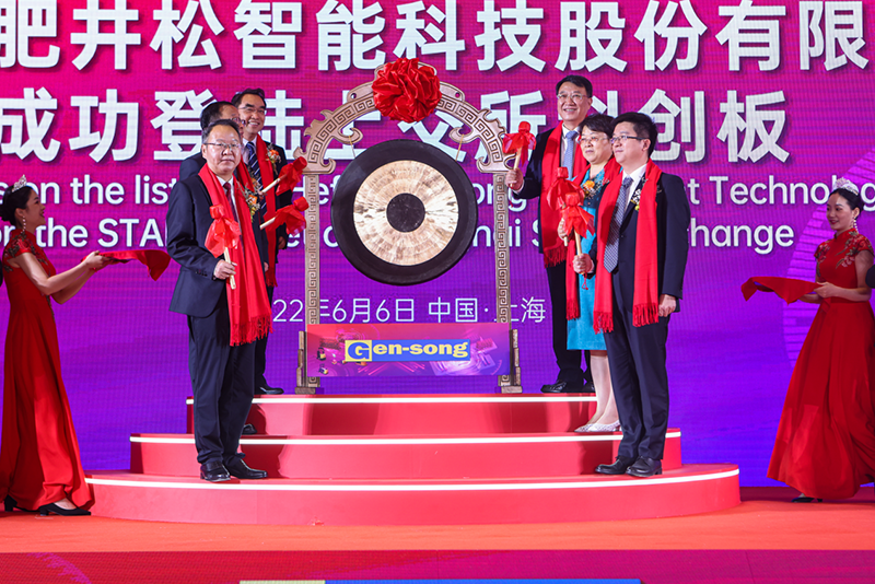 上午9时30分,在数百位嘉宾的见证下,姚志坚董事长和合肥市委副书记、市长罗云峰一起为“合肥井松智能科技股份有限公司成功登陆上交所科创板上市仪式”正式鸣锣。