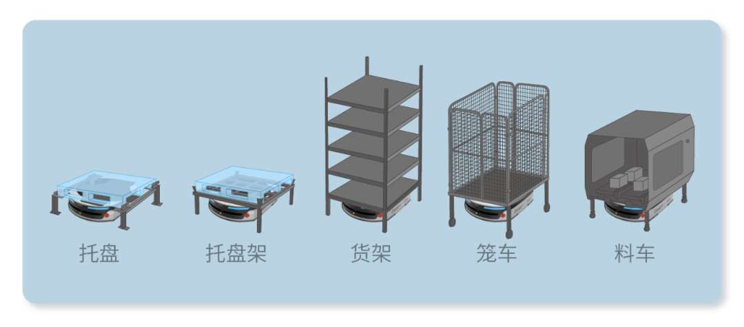极智嘉MP1000R机器人可兼容托盘、托盘架、货架、料车、笼车等多种载具,满足工厂内大多数的搬运需求。同时机器人预留标准、易用的向上接口,可支持辊筒、方托盘等上装组件,解锁对接输送线、其他设备机台等多种制造业场景。