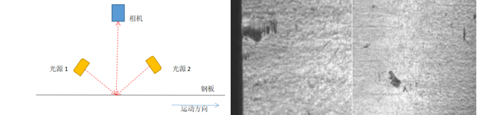 考虑到缺陷种类多样、运动速度快、宽度大、精度要求高等原因,矩视智能采用多个单色线扫相机拼接辅以双向打光方案。