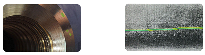 表面检测方案及部分缺陷图片例如可选用N4K-7(Alkeria)线扫相机最高支持95KHz@4096像素,理论可达0.1mm精度@500米/分钟;光源采用800W高亮线扫光源@2000mm长度。高精度的表面检测方案不仅可以应对宽度变化、宽度方向偏移、速度突变、纵向抖动等干扰,亦可防止带钢断裂导致的停工,综合提高钢板质量,防止良莠掺杂引起的产品整体质量下降。