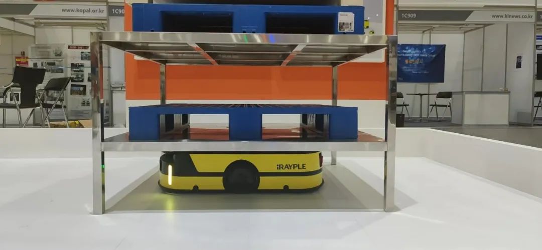 在华睿科技的展位上,最新潜伏举升型AMR和窄通道堆高式叉取型AMR产品正在循环演示无人多车型高效协同,物料智能转运方案,高度还原了现代仓储物料行业的无人化、智能化。