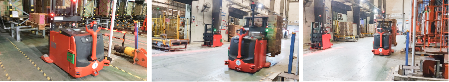 在生产车间内,在原材料成品仓库,物料种类多、重量重,需要频繁高效地向各产线配送物料,人工叉车进行货物运输存在较大的安全隐患,且无法实现物流运输的智能化和信息化。随着生产规模的扩大,仅仅通过人工作业已经无法满足生产要求。