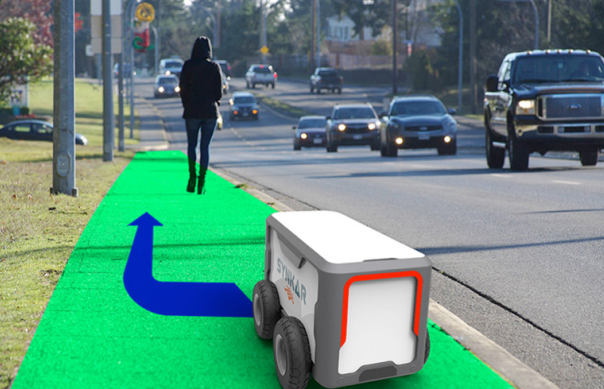 Synkar公司开发了一种机器人即服务的人行道运送解决方案。|来源:Synkar
