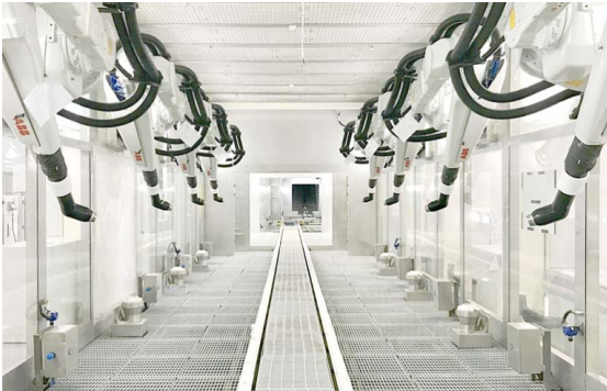 ABB的机器人被部署在OLA的一个电动滑板车巨型工厂的喷涂站。| 来源:ABB