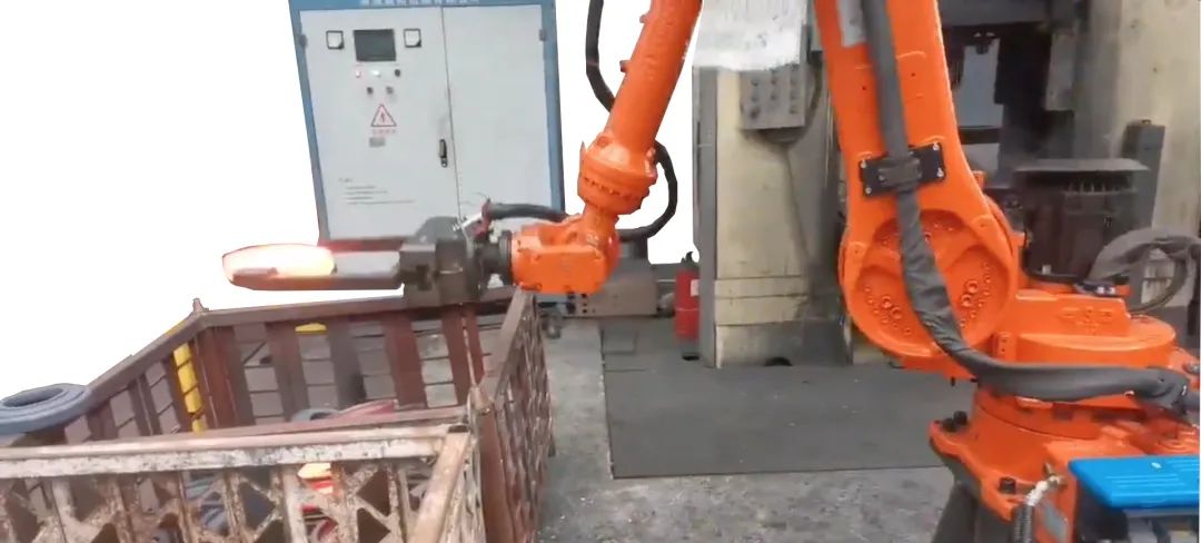 1. 首先,机器人A把法兰毛坯件放到高频炉里加热,加到设定时间后立即通知机器人进行抓取作业;