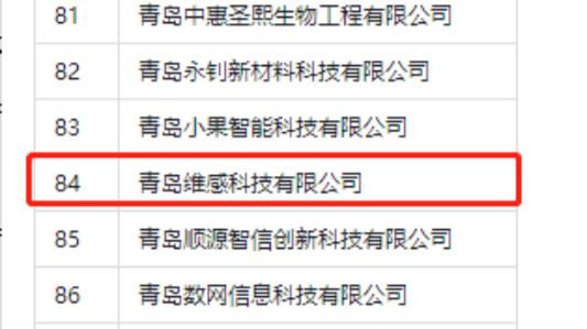 7月11日,青岛市民营经济发展局公示了2022年度拟认定第二批青岛市“专精特新”中小企业,青岛维感科技有限公司荣列其中。